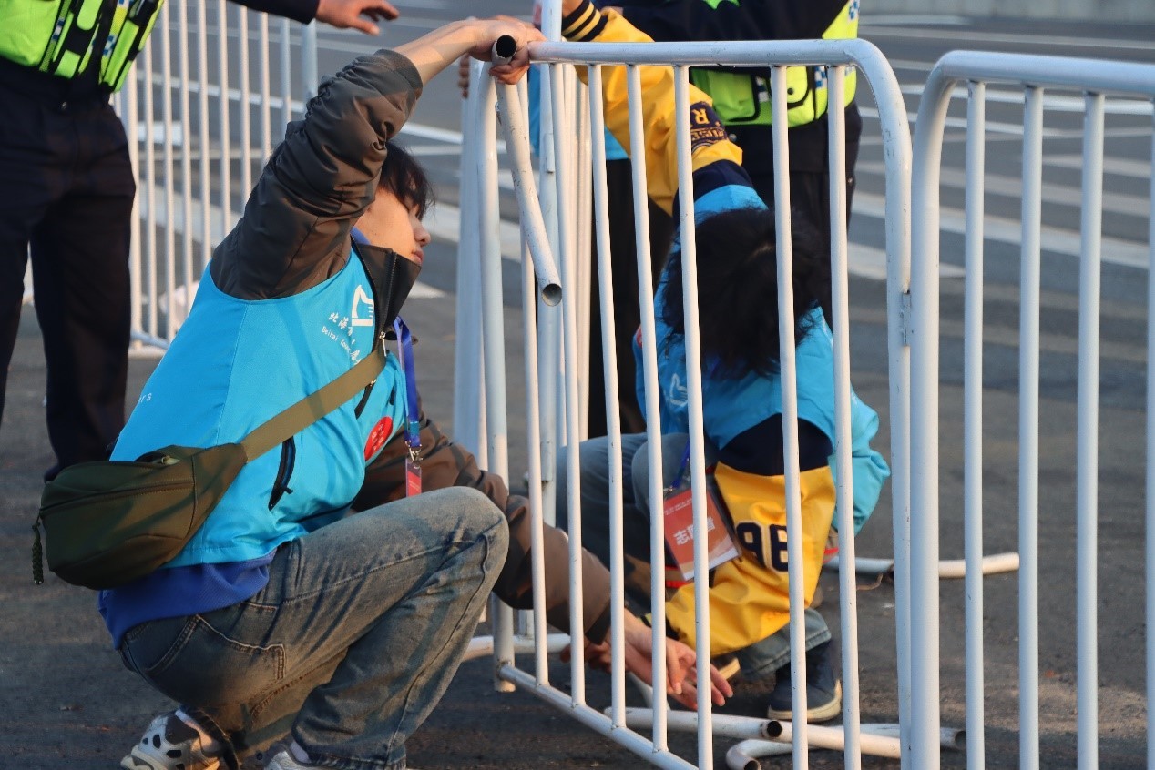 活动当天,志愿者们身着整齐醒目的蓝马甲,精神抖擞地奔赴各自岗位做赛前工作准备,温暖绚丽的光芒、秀丽的风光、志愿者们热情忙碌的场景瞬间定格,呈现出一幅绘有“热情、温暖、绿色、活力、责任”的唯美画卷。