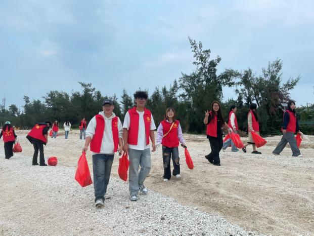 在志愿服务活动中,同学们手持清洁工具,化身“海洋卫士”,细致清理散落在沙滩与礁石间的塑料瓶、包装袋、废弃渔网等垃圾。海岸上,忙碌的身影成为海岸线上一道亮丽的风景。经过共同努力,一片片海滩重现洁净,志愿者们也在亲身实践中深刻体会到守护碧海蓝湾的责任与意义。