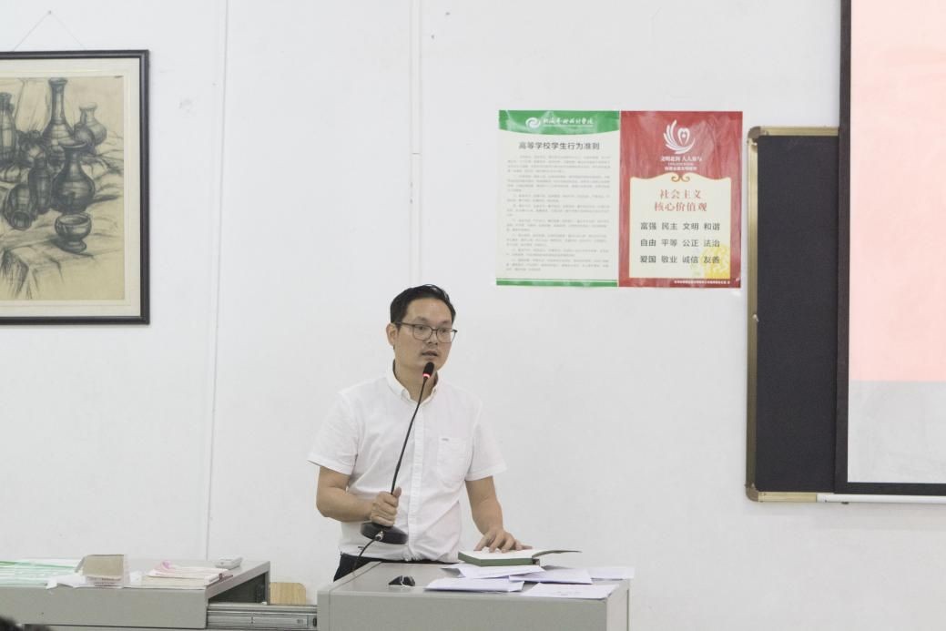 在本次会议中,孙永辉书记还带领全体教师共同学习了《新时代高校教师职业行为十项准则》。孙书记联系动画与传媒学院的日常教学与实际工作对每项准则进行了详细解读,帮助大家全面理解《准则》内容,准确把握《准则》要求,进一步增强全院教师工恪守职业行为规范、铭记立德树人初心的使命感与责任感;引导广大教师将潜行教书育人,遵守学术规范,关心爱护学生,坚持言行雅正,传播优秀文化的行为准则贯彻落实到日常的一言一行中;强调教师们要带头践行社会主义核心价值观,弘扬真善美,传递正能量,积极奉献社会。