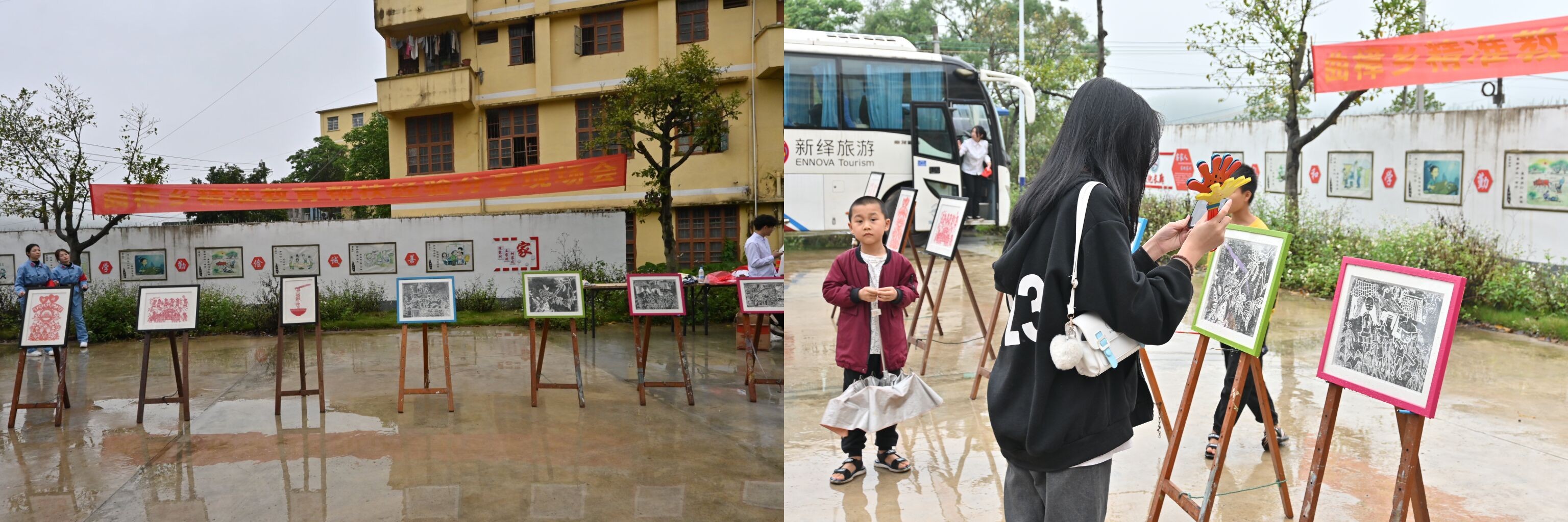 小型画展中展出了艺术教育和学前教育专业的学生创作,有体现中国传统文化的剪纸作品、反映北海滨海城市风情的绘画作品、体现童趣的创意画。作品以通俗和富于感染力的艺术表现手法展示了我国优秀的艺术文化魅力体现学生突出的专业能力深厚的文化功底,为繁荣乡村文化增添活力。