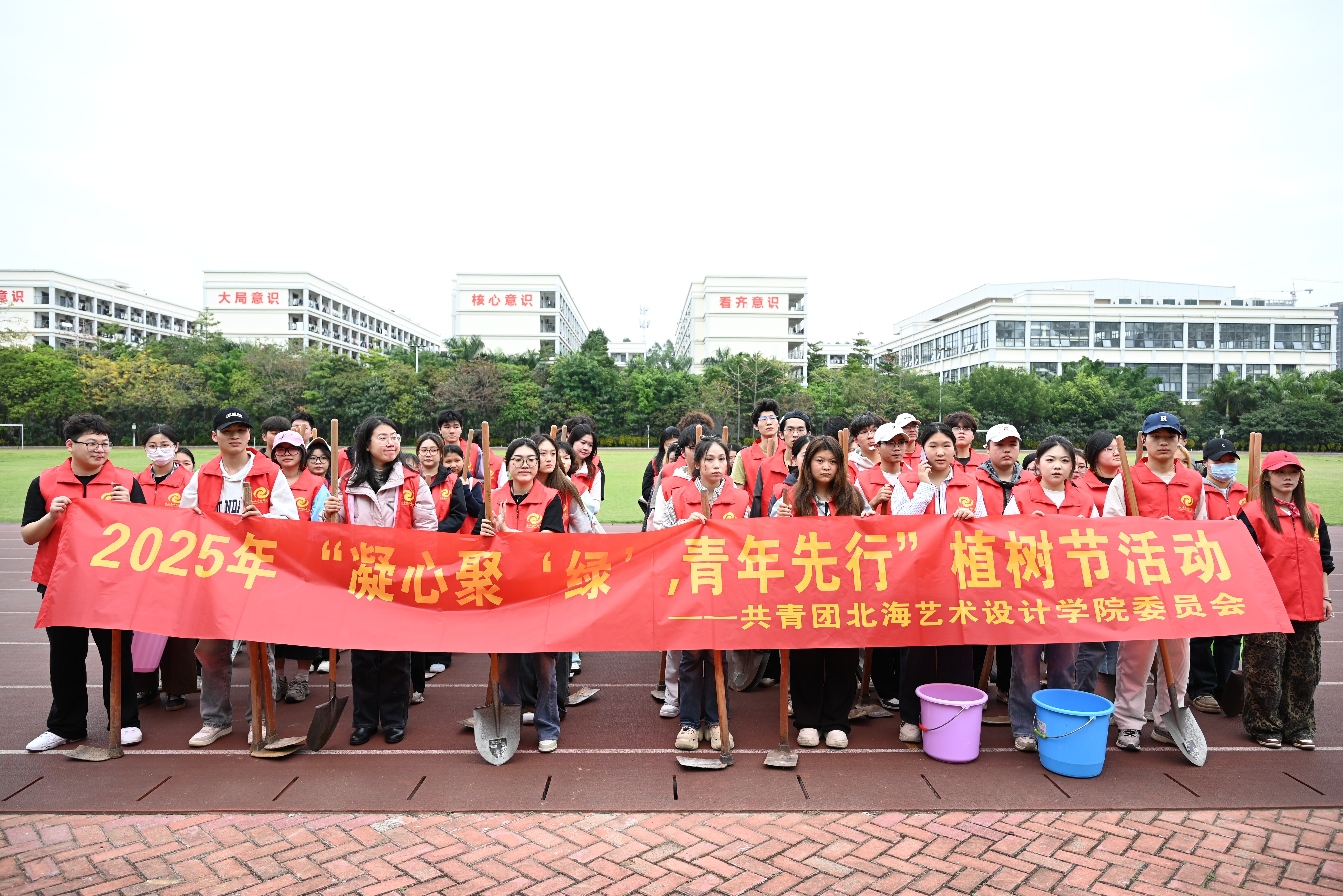 为深入学习贯彻习近平生态文明思想,切实践行“绿水青山就是金山银山”这一理念,坚持人与自然和谐共生,弘扬雷锋精神,增强我校师生绿色环保意识和社会责任感,同时进一步美化校园环境,3月11日,我校团委组织80余名志愿者在南校区开展“凝心聚‘绿’,青年先行”植树节活动。