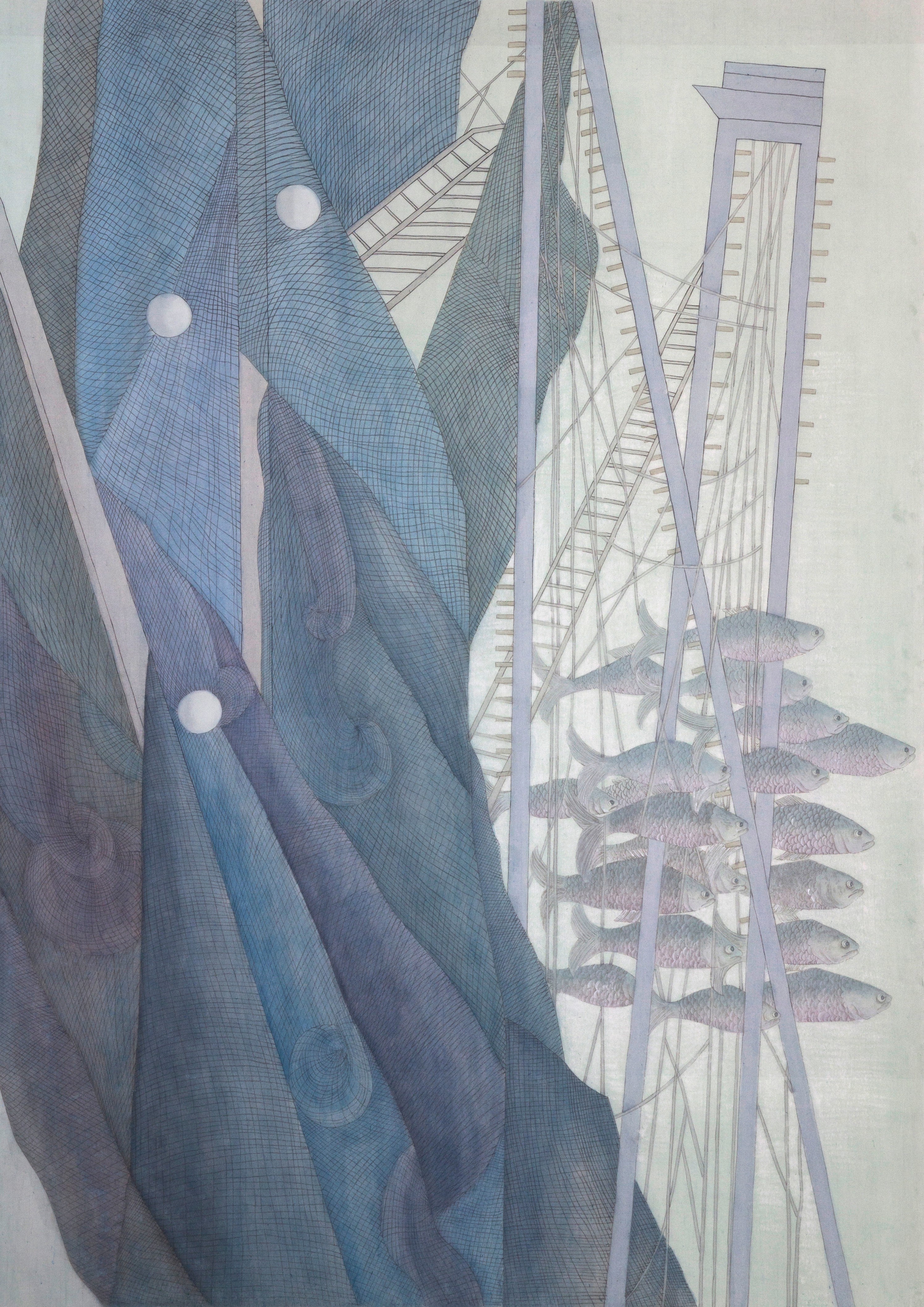 郑梦思《渔》120×169cm  2023年 纸本