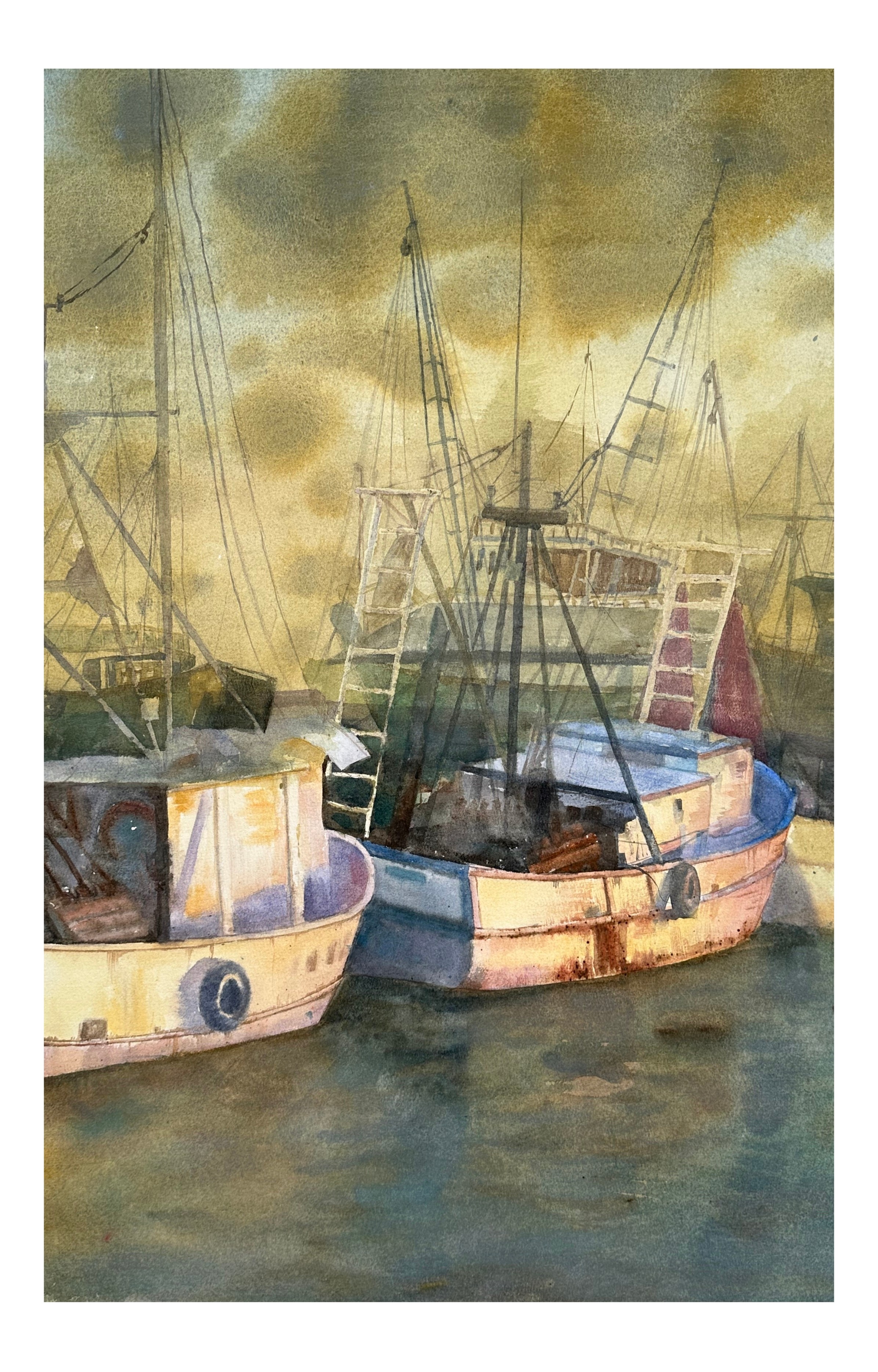 陈玉秀《雾中渔港》71cm×47cm  2023年 纸本水彩