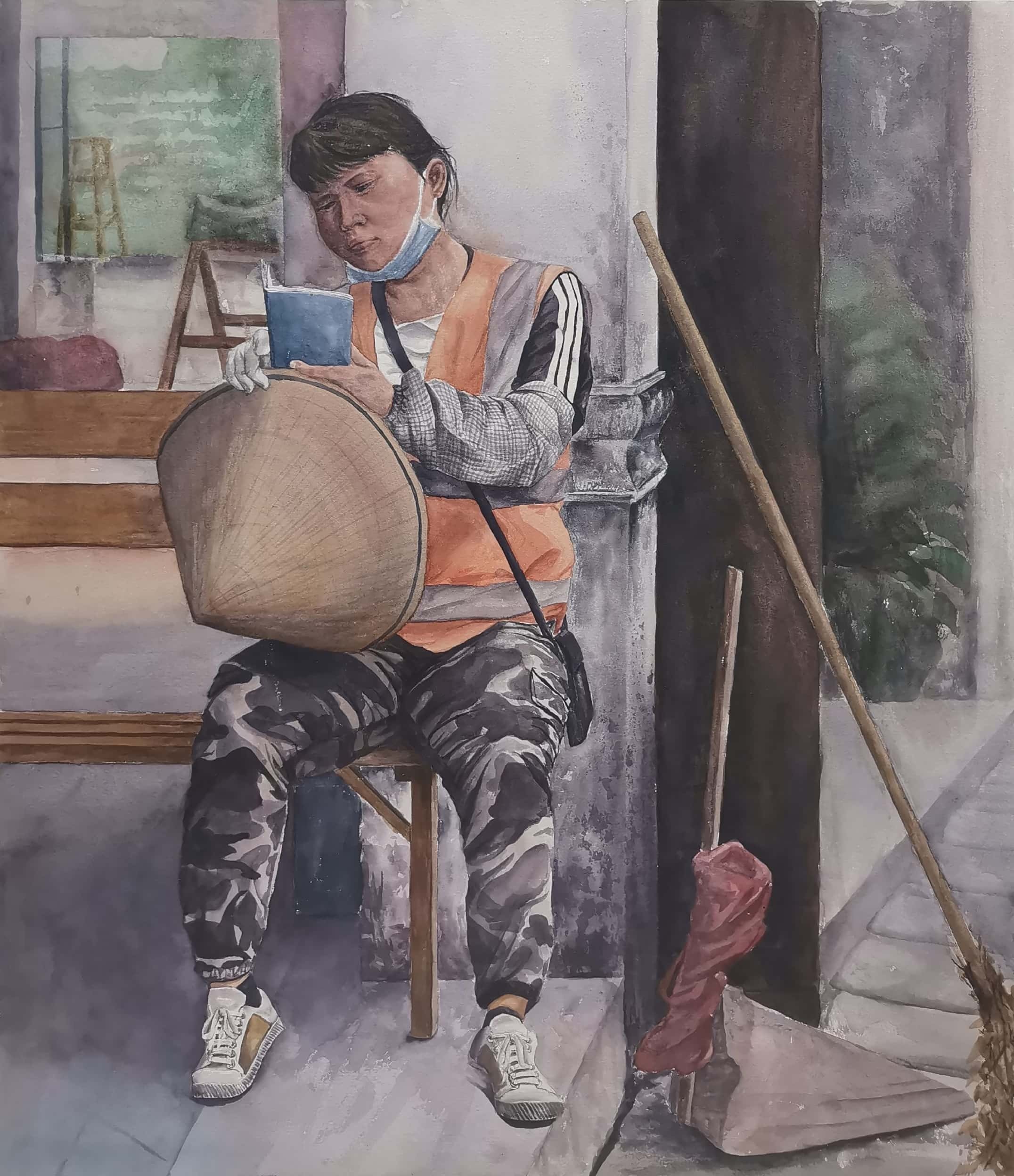 韦宇欢《阅读》48cm×55cm 2023年 纸本水彩