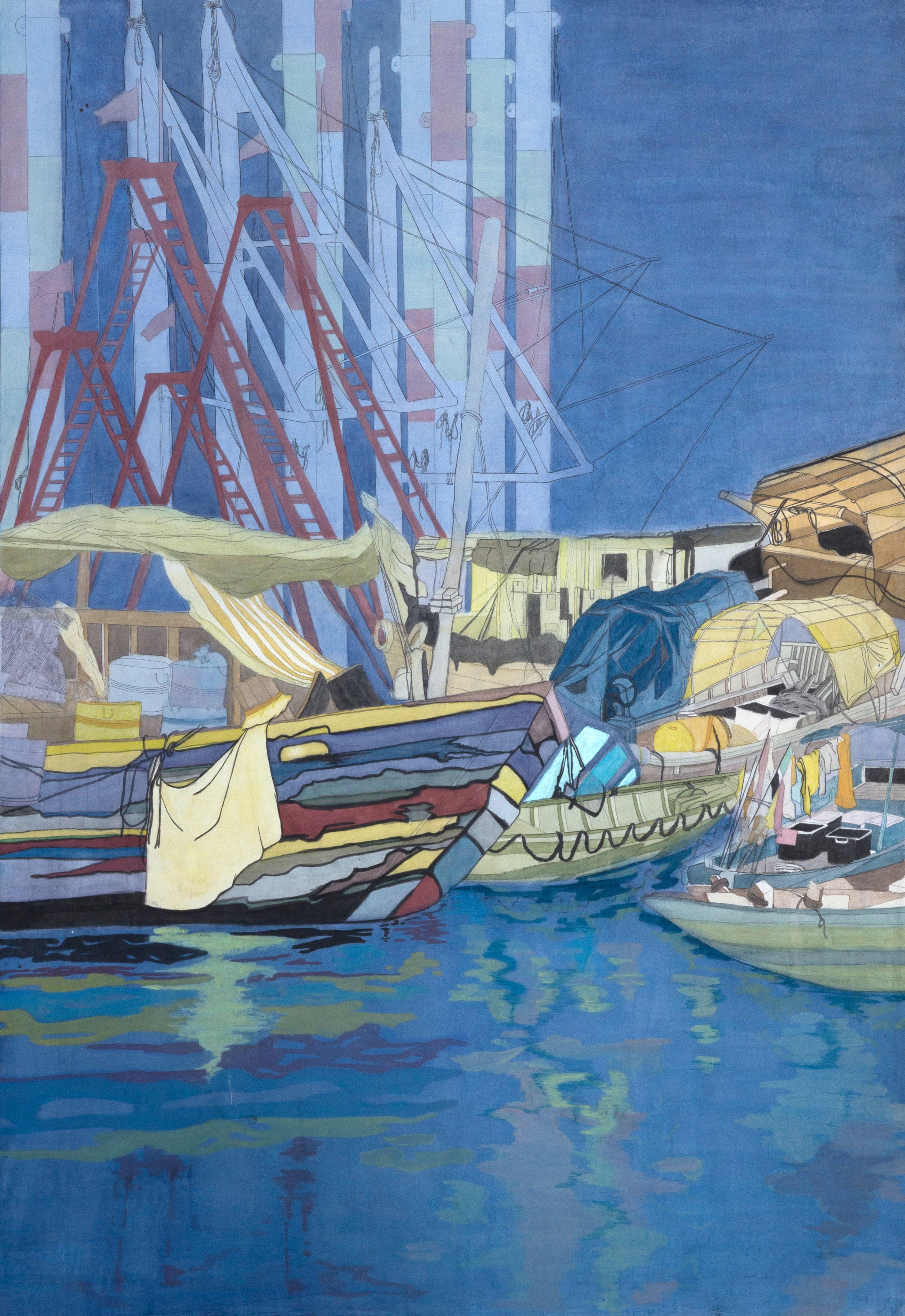 李秋月《夜港》126×176cm  2023年 纸本