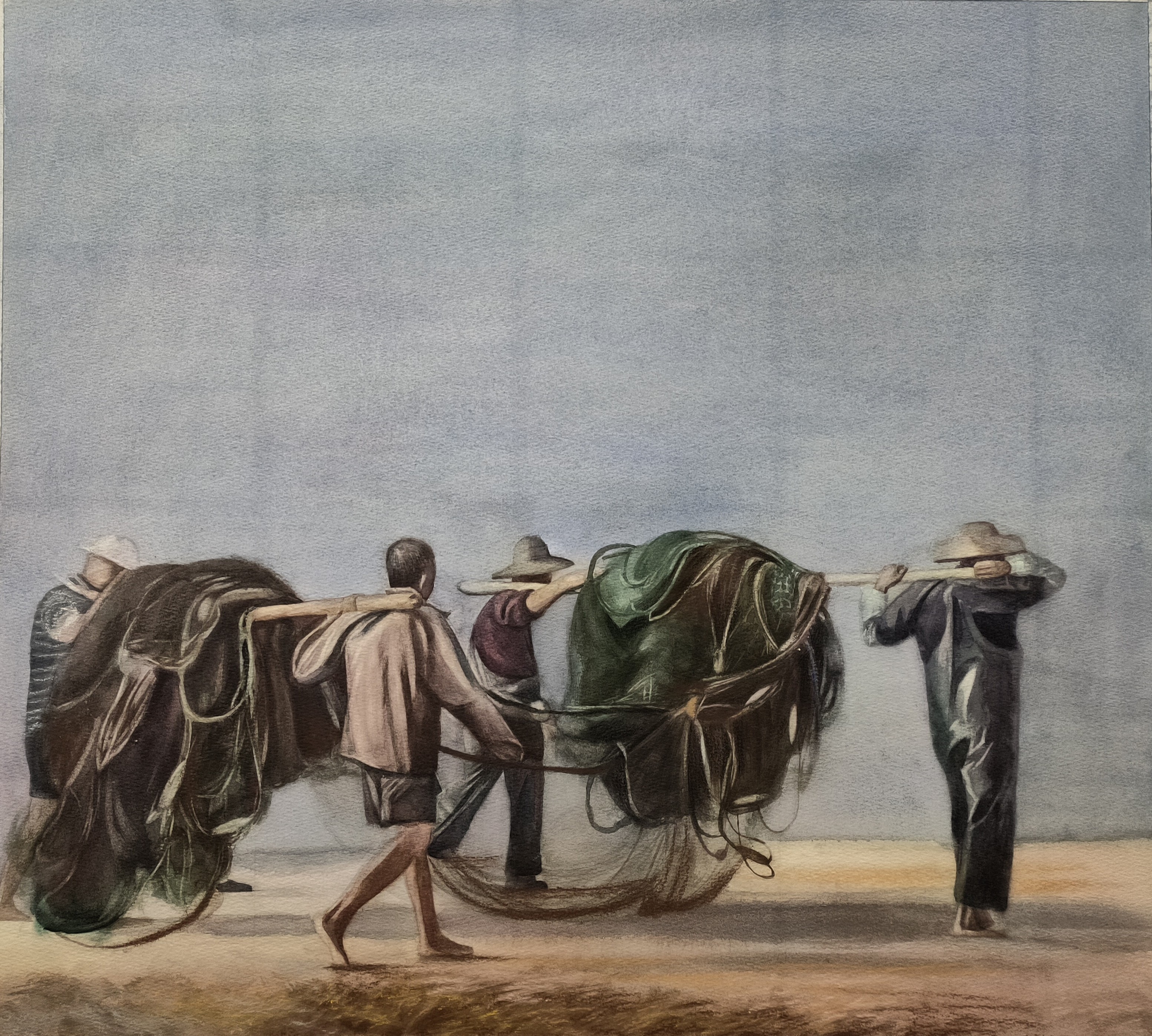 何思缘《渔民》(之三) 48cm×48cm  2023年 纸本水彩