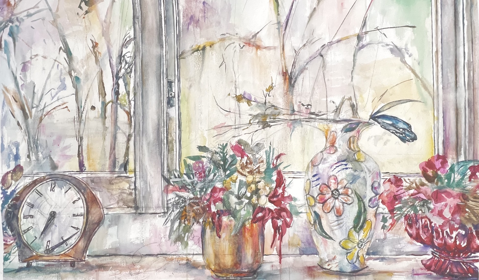 吴尚高《窗台》50cm×70cm  2023年 纸本水彩