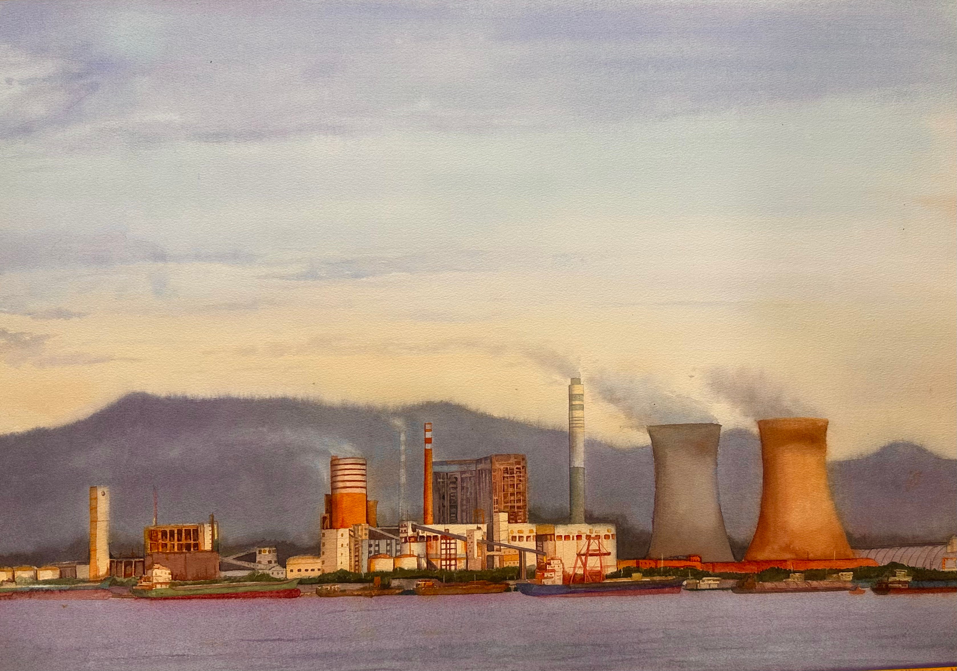 潘巧姝《核电站的英姿》65cm×71 cm  2023年 纸本水彩