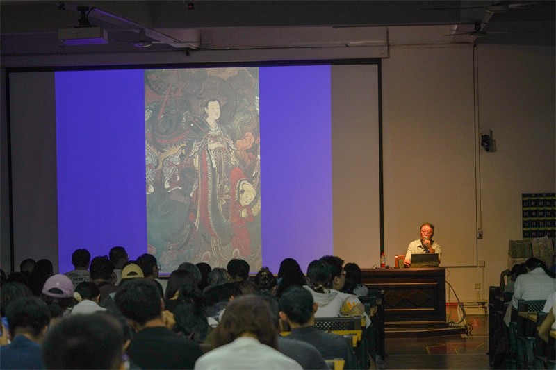 讲座伊始,王书杰教授对中国传统绘画材料艺术表现的多个方面进行了简单介绍,其中包括材料的研究、历代绘画的远近、当下中国画材料的发展,以及运用传统材料如何展现新的绘画形式等,他表示希望加深这些方面的了解可以对同学们今后的学习创作有所帮助。