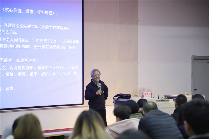 2019年1月4日晚19:30分,西安交通大学工业设计系教授兼博士生导师李乐山先生莅临我校,为我校师生带来题为《善良与大爱》的精彩讲座。本次讲座由我校副校长王斌主持。