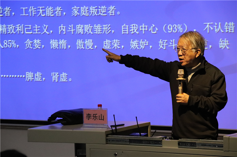 对于全局性问题,李乐山教授认为,个人全局问题关系到人生的意义,并谈到现代人所崇尚的西方现代核心价值观,即复活泛神论,享乐主义,追求强势等不成熟观念,因此我们应该把恢复中国传统文化放在第一位。今后几十年是核心价值观、信仰信念、科学技术剧烈变化的时期,如何学习,如何判断你未来的生活方式,是大家在大学学习生活中重点考虑的事情。