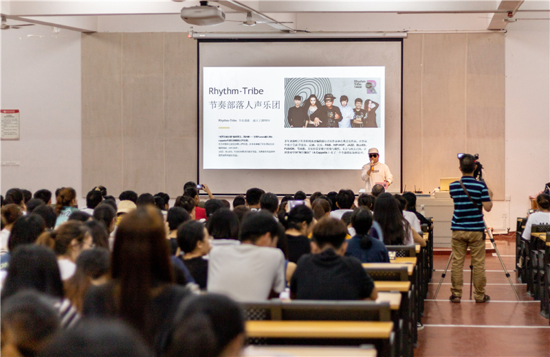 2019年4月24日晚19:30,华人新流行音乐领军先锋魏小童先生于我校西校区伦理楼107为我校师生带来一场题为《关于引领无伴奏合唱的中国节奏部落人声乐团》的精彩讲座。本次讲座由我校副校长王斌主持。
