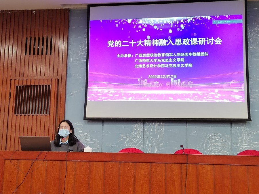 近日,马克思主义学院受邀与广西思想政治教育领军人物汤志华教授团队、广西师范大学马克思主义学院在桂林联合举办了“党的二十大精神融入思政课”研讨会。广西师范大学、北海艺术设计学院、桂林电子科技大学、福建师范大学、集美大学、广西民族大学、南宁职业技术学院等区内外多所高校70多人参加。