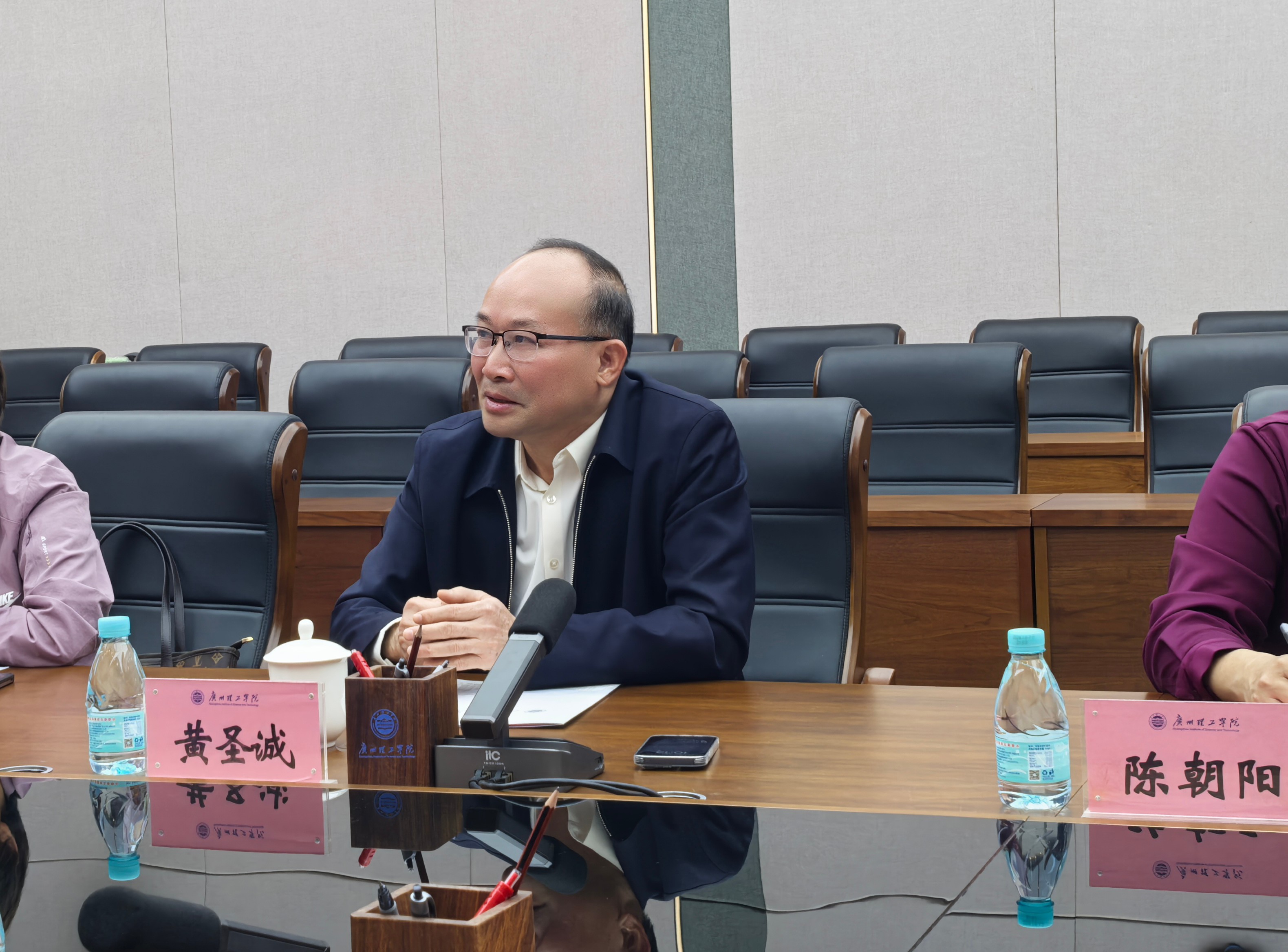 广州理工学院党委书记黄圣诚对于罗秋梅一行表示热烈欢迎。与会人员有广州理工学院党委组织部长陈朝阳、广州理工学院马克思主义学院院长袁毓玲、马克思主义学院教师代表史永康、师雨。