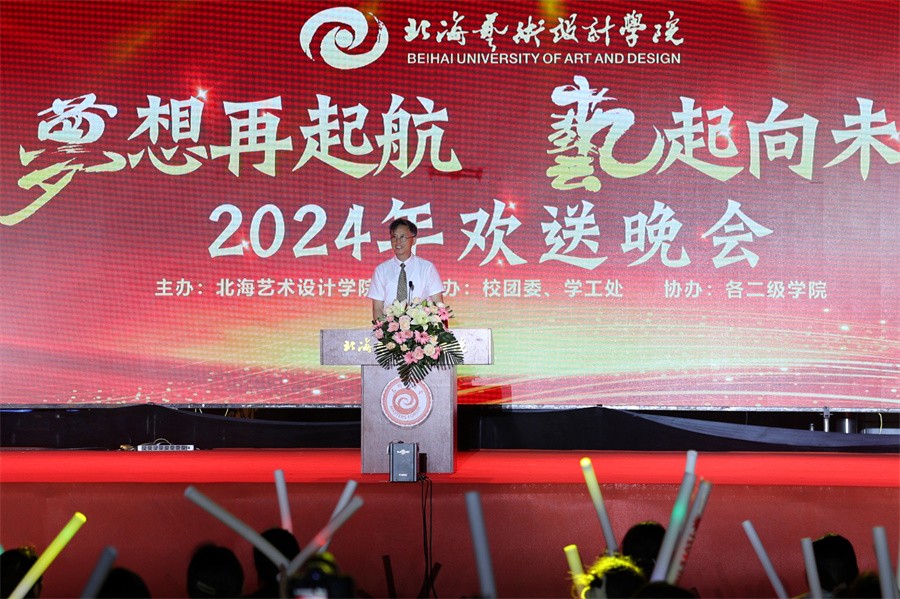 扬帆摇桨日,乘风破浪时。5月31日晚,我校于西校区操场为即将上京逐梦的2021级学子举办了主题为“梦想再启航,‘艺’起向未来”的2024年欢送晚会。校长卢新华,党委副书记彭仁、刘承初,副校长陶立阳、邱杰、刘朝雄、包建明、何煜,总督学王斌及各二级学院领导和各处室负责人出席晚会与广大学子欢聚一堂。