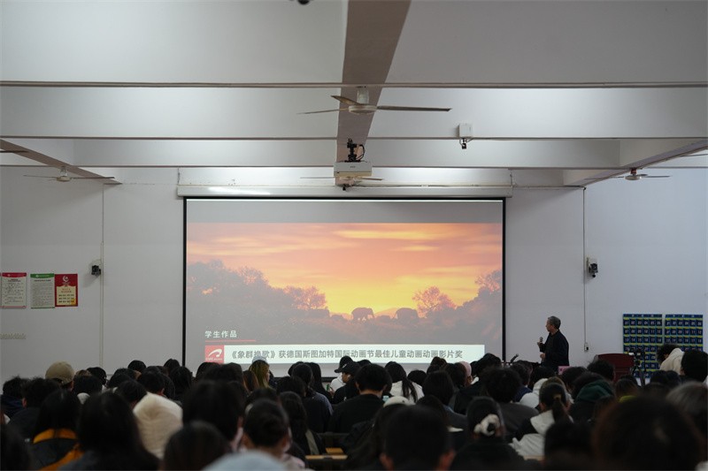 讲座尾声,黄心渊教授分享了中国传媒大学多届优秀毕业生的成长案例,鼓励师生围绕专业兴趣持续深耕,在实践中培养对动画创作与创新的敏锐洞察力,为未来投身动画行业积蓄力量。此次讲座有效推动了我校动画专业教学与行业前沿实践的深度衔接,讲座在全场师生的热烈掌声中圆满落幕。(陈阳、熊明惠、林芊芊/摄)