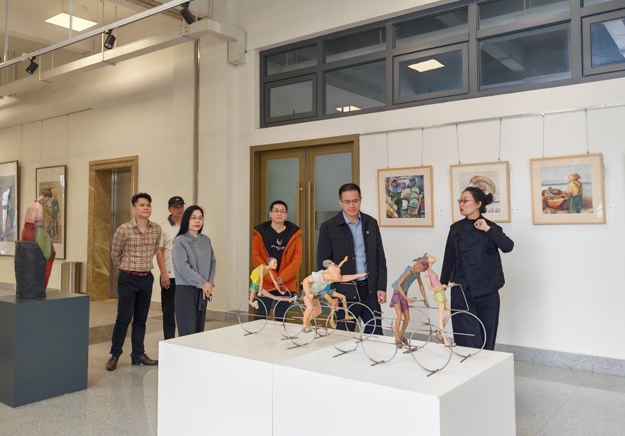 郑道富副主席一行前往学校艺德楼展厅,实地参观了师生艺术作品展示。展厅内,各类兼具创意与内涵的作品充分展现了学校的艺术教育成果与师生的创作活力,郑道富副主席认真听取作品介绍,对作品的艺术水准与思想价值给予了高度肯定,不时驻足点评,对学校在艺术人才培养方面的成效表示赞赏。