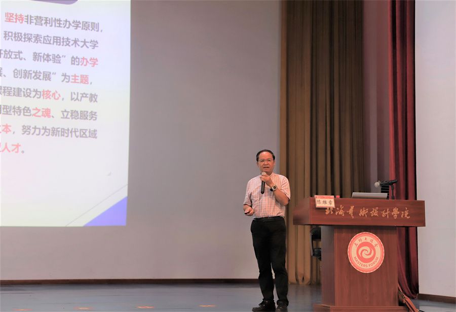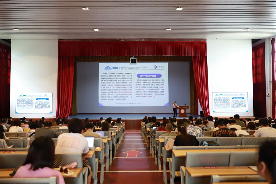 6月28日下午,我校邀请南宁学院副校长陈雄章教授到校作了题为“深化产教融合:应用型高校建设的重要轴线”的专题报告。会议由副校长胡胜主持,学校全体党政领导、职能部门及院(部)科级以上干部、全体任课教师参加会议。