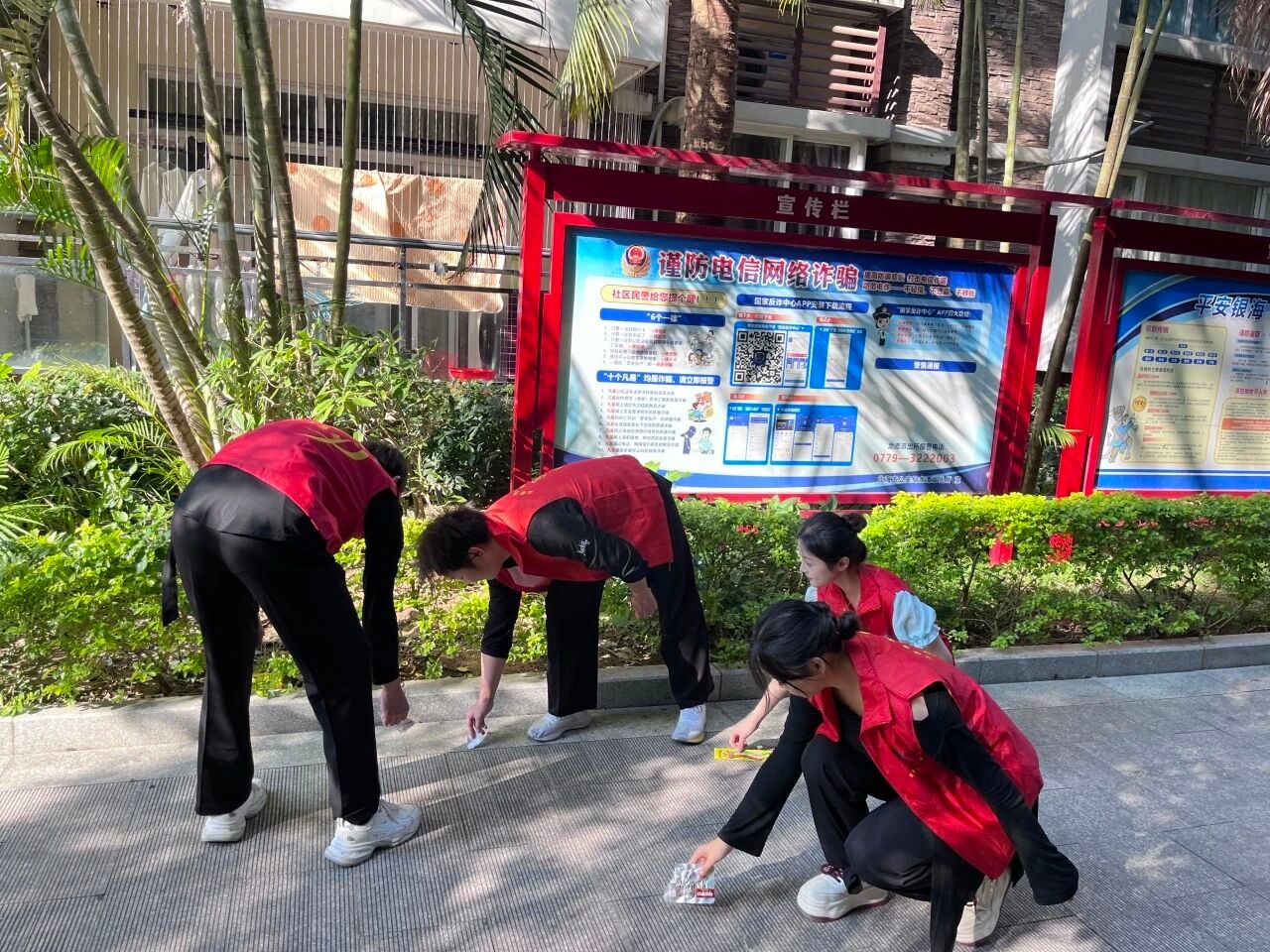 表演结束后,大家迅速转换角色,化身社区环境的“美容师”。同学们分成多个小组,对社区各区域进行清理。从细小垃圾到废弃杂物,志愿者们协同配合、认真细致,不放过任何一处卫生死角。