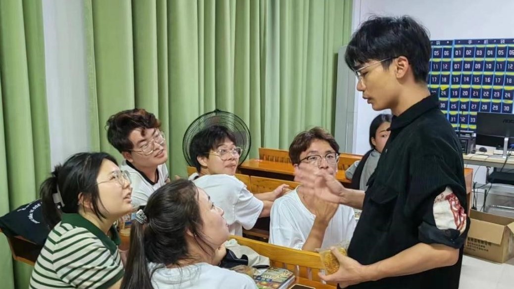 为使勤工俭学的同学们切实感受到节日氛围,体会到美术学院的人文关怀以及勤工俭学大家庭的温暖,四位美术学院领导教师为同学们派发月饼,再次送上节日祝福。(殷声 摄)