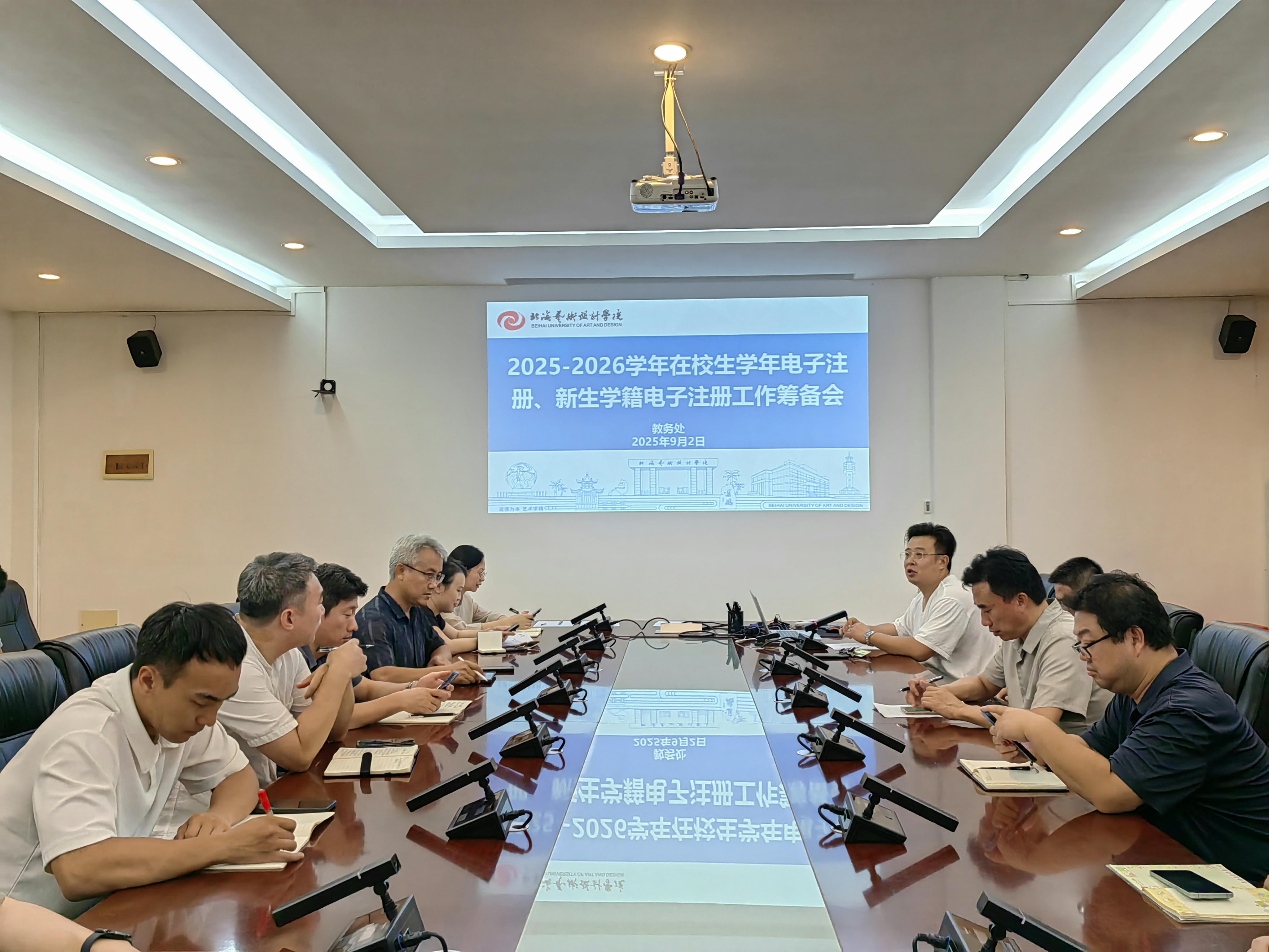 2025年9月2日,我校在行政楼212召开了学籍管理及2025-2026学年在校生学年电子注册、新生学籍电子注册工作会议。陶立阳副校长、党委宣传部、教务处、学生工作部(处)、招生就业处等职能部门负责人、各二级学院主管教学副院长、学籍管理相关工作人员参加会议。会议由教务处武鹏程处长主持。