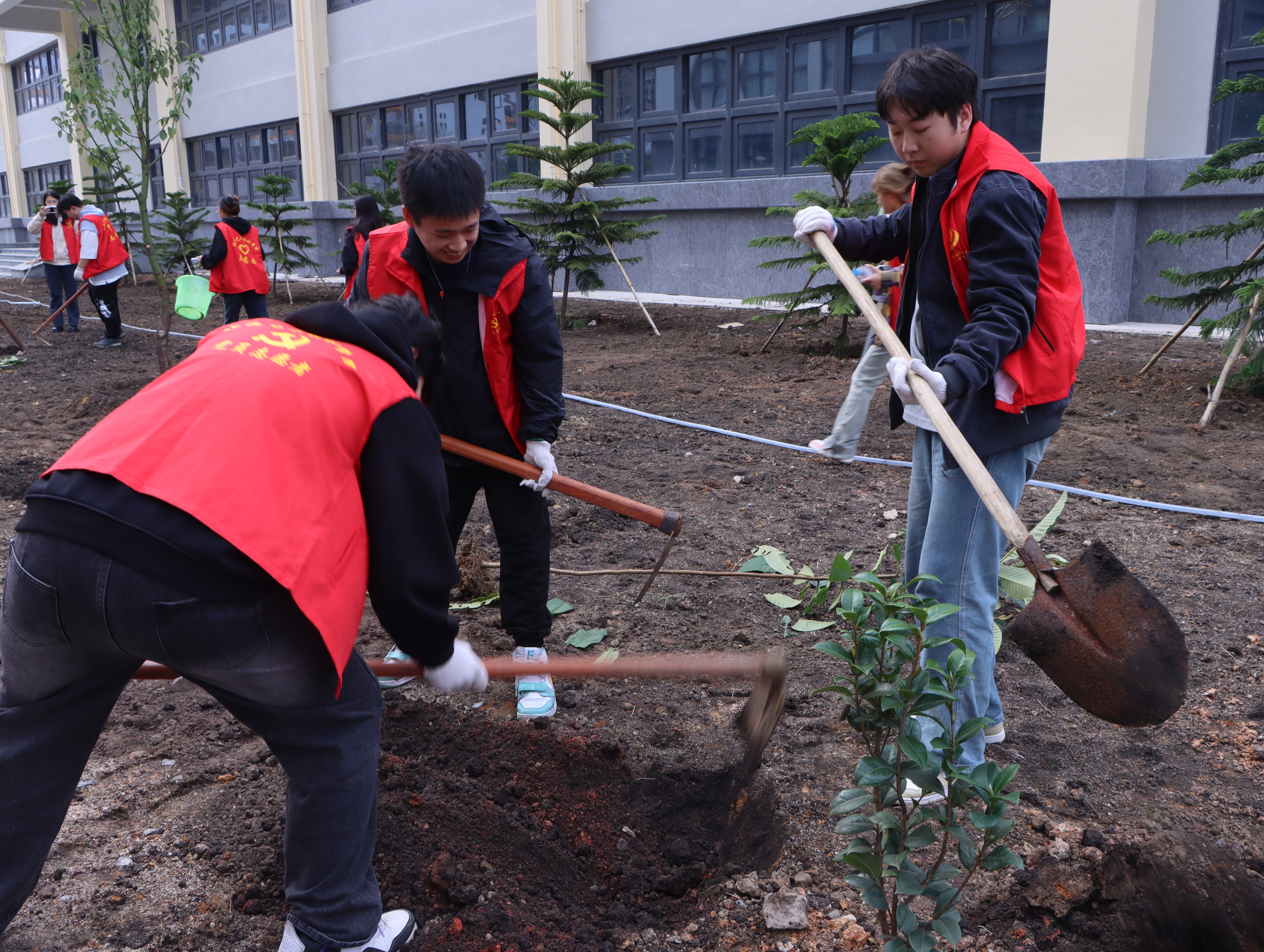 志愿者们植树的背影组成了校园中一道靓丽的风景线,一棵棵小树苗被栽下,南校区被一点点新绿缀满,同学们也在植树的过程中了解到许多有关树木的知识,认识到树木对于环境的重要 此次活动,我校师生以实际行动践行“绿水青山就是金山银山”的理念,为推进北海市创建文明城市工作贡献自己的一份力量。同时,充分发挥了团结协作、吃苦耐劳的精神,弘扬了志愿者“奉献、友爱、互助、进步”的精神。 溢一缕春光 种一丝新绿 换一片希望 在这阳春三月里 一起来种棵树吧(林修竹、黄韵露/摄)