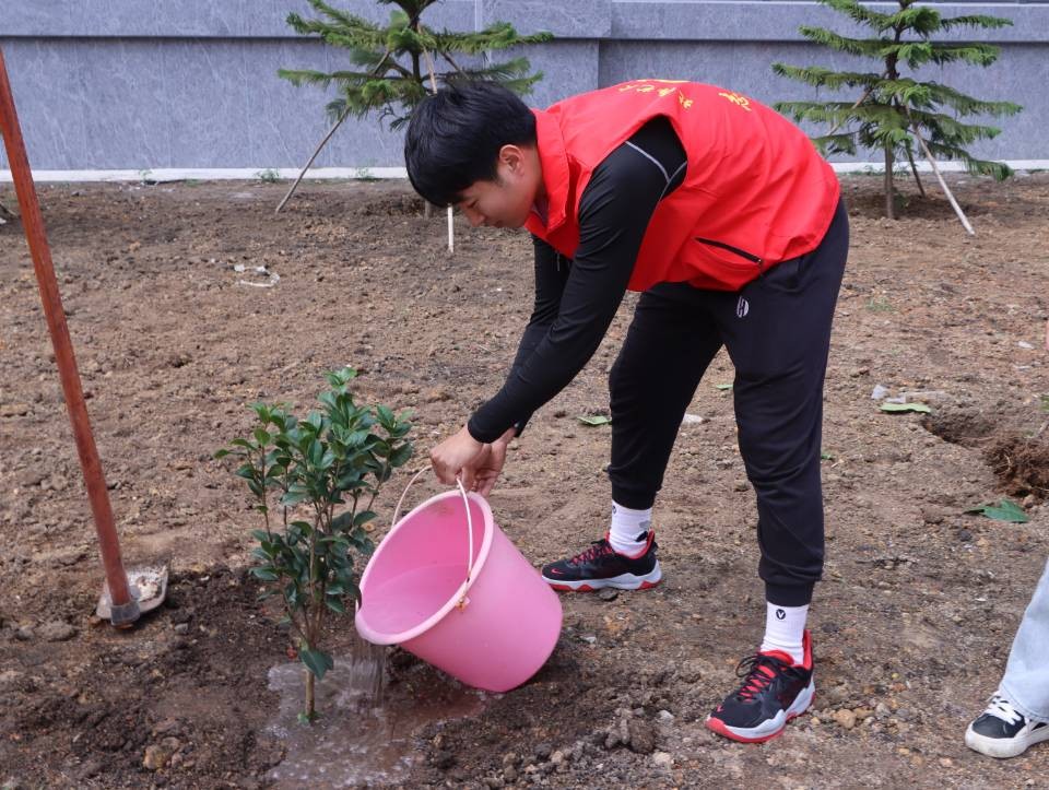 为深入贯彻习近平总书记重要讲话精神,牢固树立绿水青山就是金山银山的理念,增强全校师生的环境保护意识,同时美化校园环境,3月12日下午,我校团委在南区开展“志愿我先行,共栽青年林”植树活动,活动共有50余名师生志愿者代表参加,用行动播种绿色,美化环境。