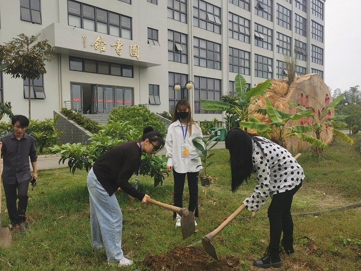 你种树,我除草,枝头小鸟齐欢叫;织一件,绿长袍,披在祖国山河上。大家在欢声笑语中种下希望。学院的李谦老师告诉大家,20年前学生九栋宿舍楼前也是这样的树苗,如今大家已经看到了苍天大树!过几年大家带着孩子返校也可以分享我们今天的劳动成果了!实实在在的造福后人的造林活动,多么生动现身说法!