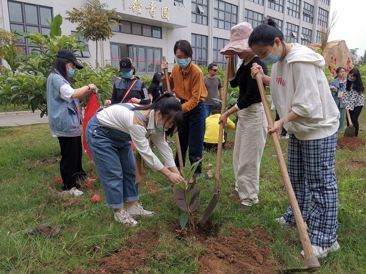 2021年3月12日,我院党支部分团委的老师同学们,在草地上种下了一颗颗希望的树苗。师生们畅所欲言,纷纷献策怎样保护幼苗,助力小苗快长快大。分团委纪检部陈沁同学说要亲自设计小牌匾,让大家了解和参与爱护活动。