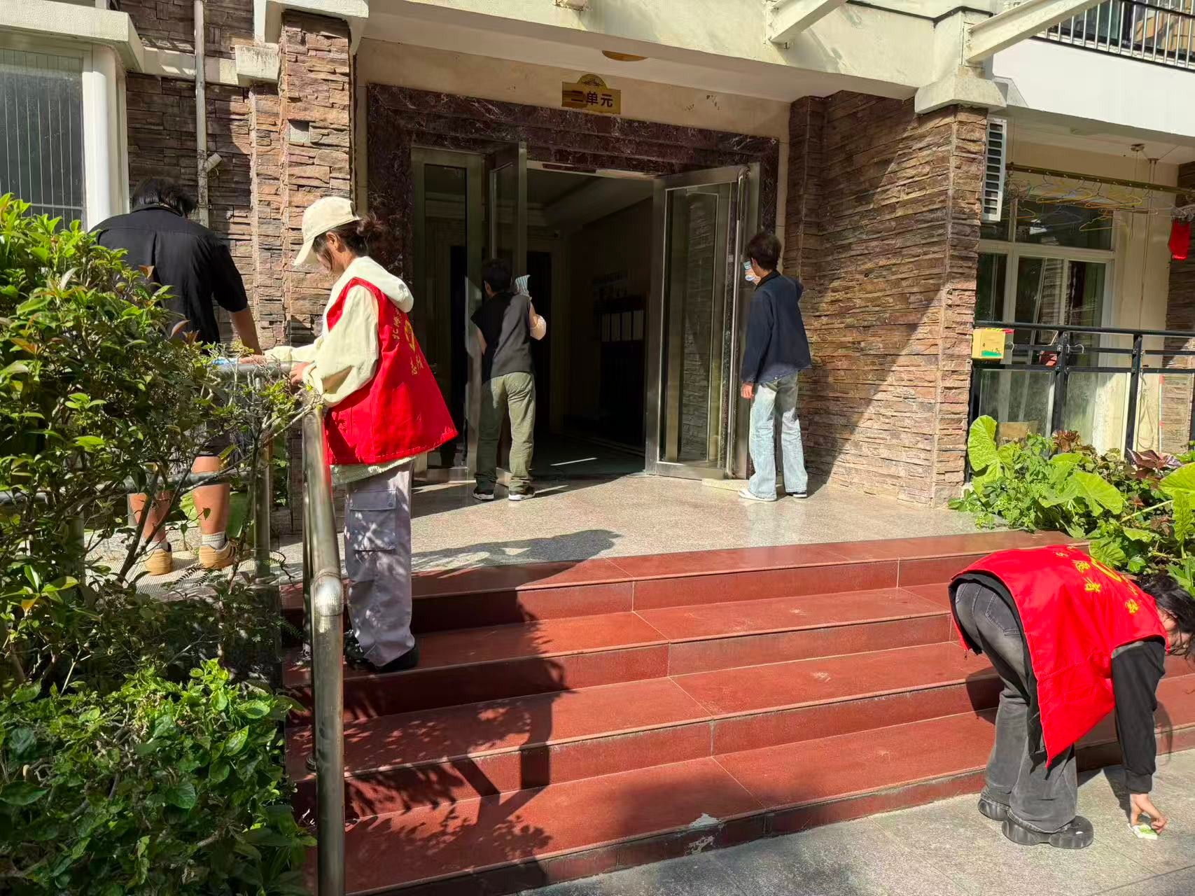 社区志愿服务环节,志愿者们以“精细化服务”为导向,分组开展公共区域环境优化行动:有的手持工具清理角落杂物,细致规整公共空间秩序;有的俯身擦拭休闲设施,让座椅、健身器材重焕整洁风貌。从细节处入手,用实际行动为社区“焕新”,让便民空间更添温馨质感。