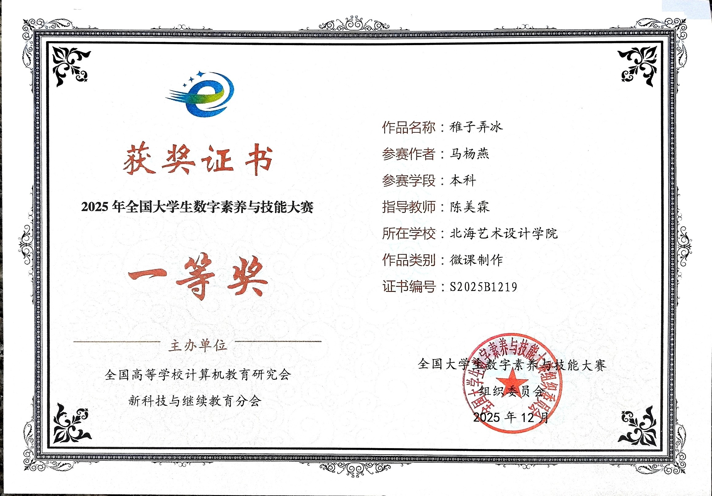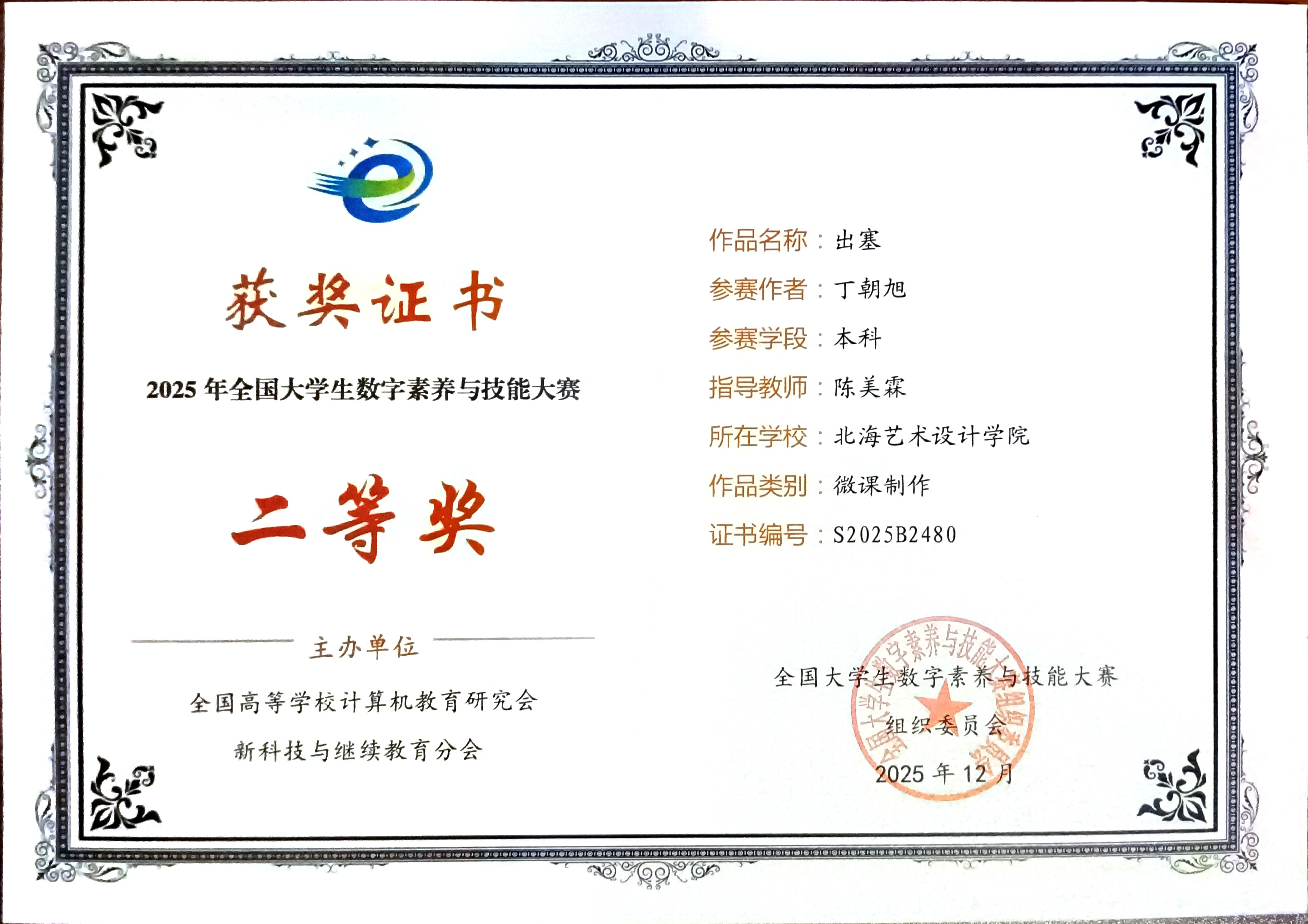 2025年全国大学生数字素养与技能大赛获奖证书