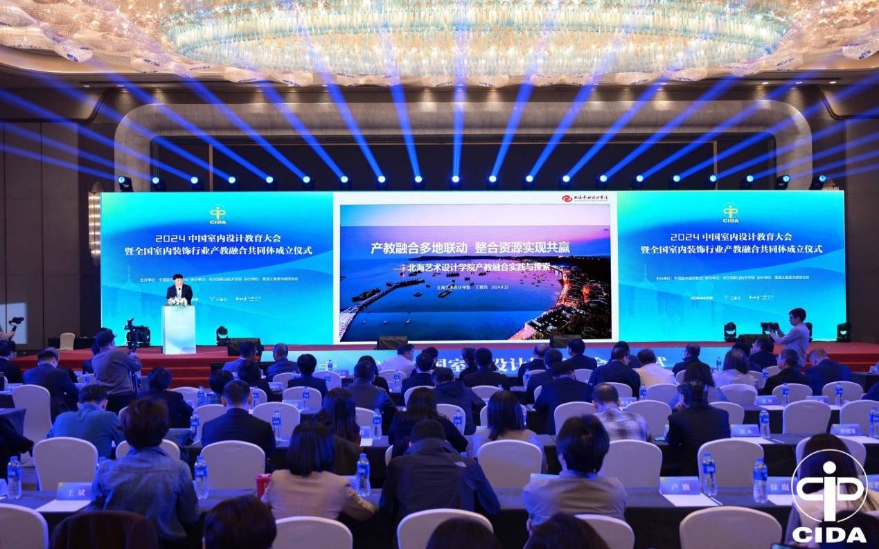 据悉,此次会议共有来自全国各省市院校的1000多位师生代表和知名企业代表、行业协会代表到现场参会。大会由“2024中国室内设计教育大会”开幕式;“全国室内装饰行业产教融合共同体”成立仪式;2023全国院校室内设计技能大赛颁奖仪式;2023年度室内设计1+X 工作总结表彰仪式;室内设计国际教育发展专家论坛暨学术研讨会;“全国室内装饰行业产教融合共同体”第一次工作会议;2024全国室内设计职业教育成果展和相关院校室内设计优秀经验案例交流等多个部分组成。大会围绕产教融合教育主题,旨在汇聚企业和院校等多方力量共育人才。