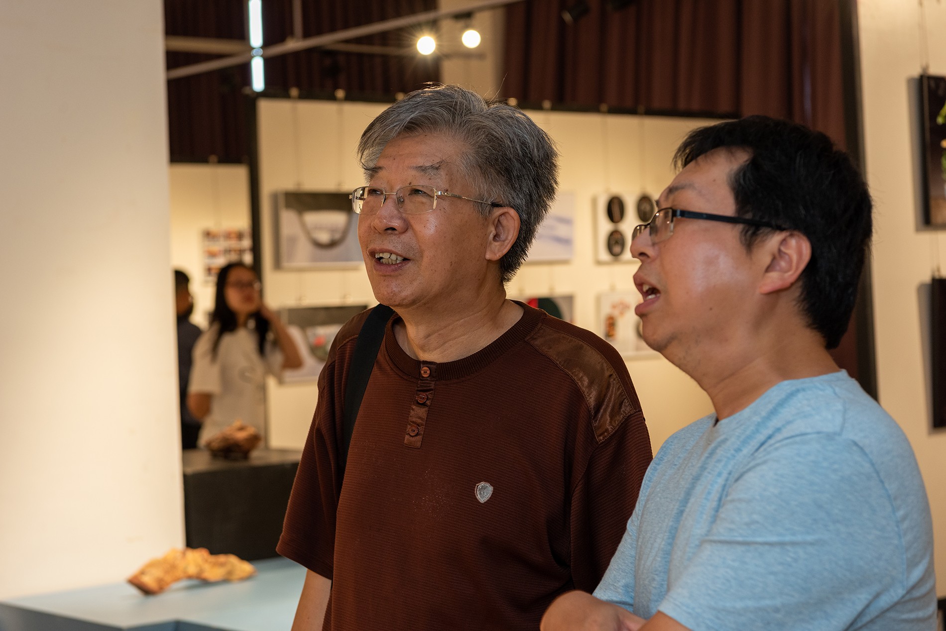 开幕后各领导、教师和学生进入展厅进行观展,师生们展开了热烈的讨论,馆内学术氛围高涨。