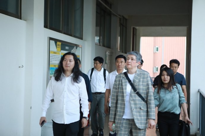 2018年10月235点于我校东校区综合楼动画学院,德比大学艺术学院院长Jane Stanton莅临我院进行考察与指副院长胡胜、动画学院常务副院长陶立阳、动画学院副院长武鹏程、动画学院副院长孙永辉等陪同,Jane Stanton院长在看完动画学院实训室后,对我院学生作品以及对学院的培养模式给予了很高的评价。