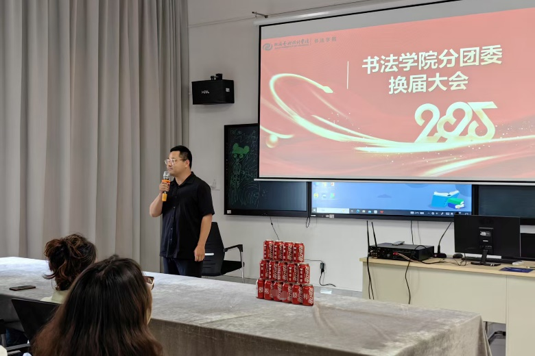 2025年6月3日,在艺德楼507书法教研室隆重举行书法学院分团委换届大会,大会在庄严的国歌声中拉开帷幕。