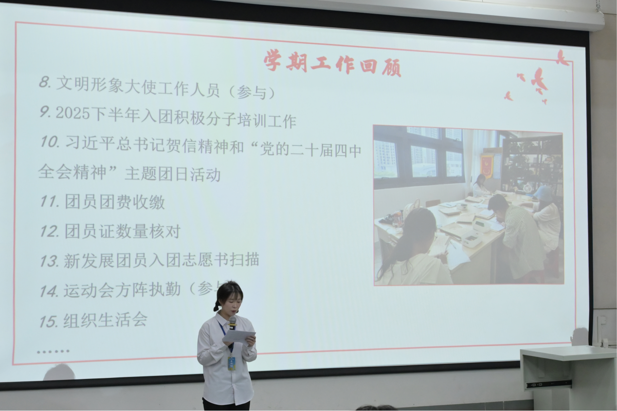 随后,分团委各部门代表依次上台发言,系统汇报了本学期的工作内容与特色亮点,剖析部门工作中存在的短板及原因,并结合实际制定针对性改进措施,为下学期进一步提升部门工作效率奠定坚实基础。