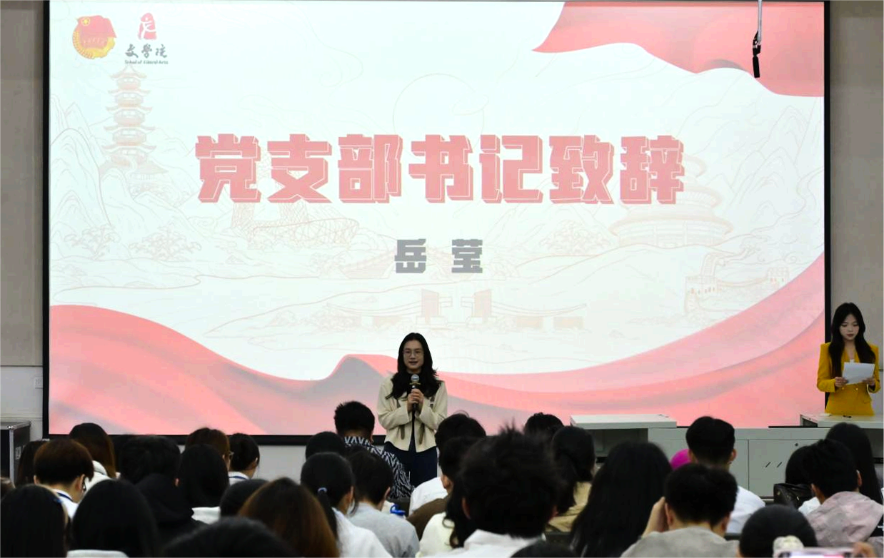 文学院党支部书记岳莹讲话