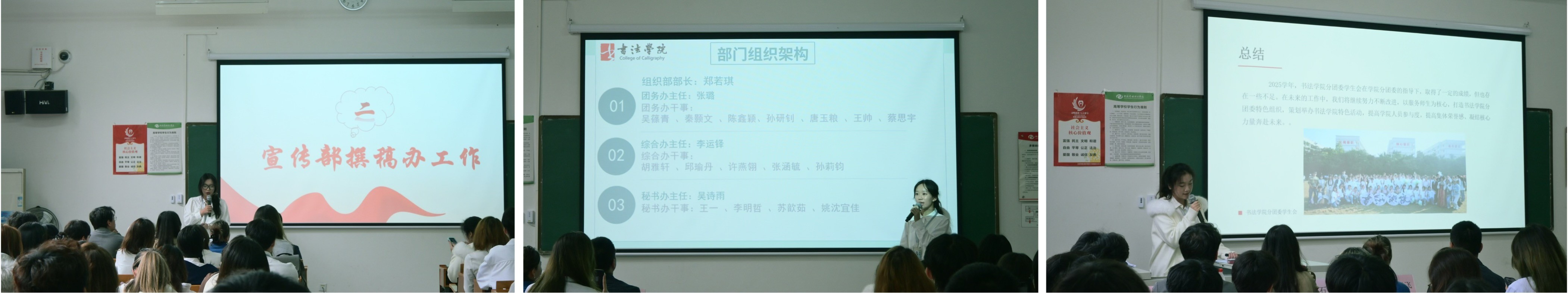 书法学院党支部副书记左云飞作总结讲话。他对各部门工作给予充分肯定,并结合当前形势寄语全体成员,希望大家以热爱与担当为笔墨,持续展现分团委的朝气与活力。