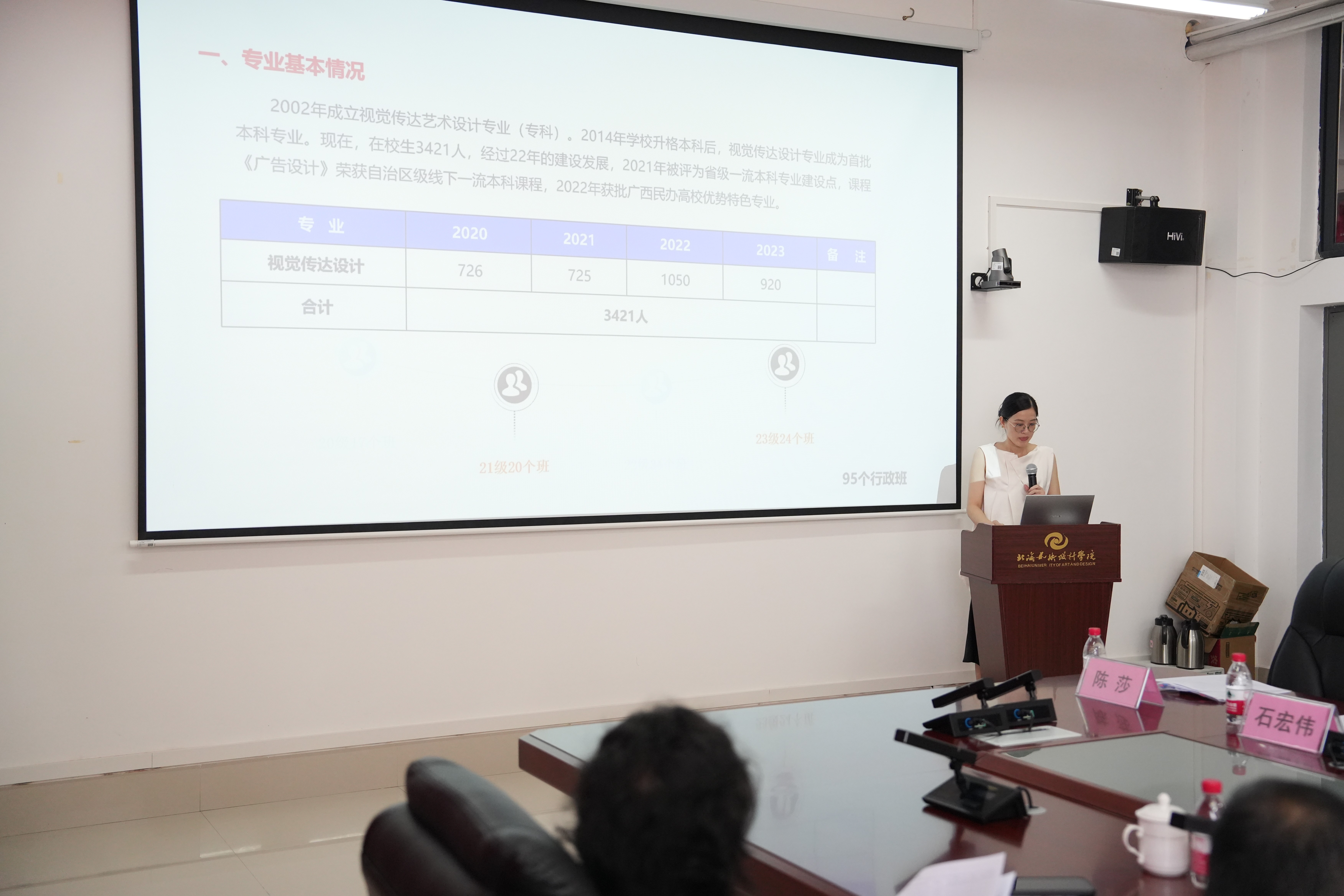 研讨会上,陈莎副主任首先就视觉传达设计人才培养方案进行了汇报,从专业基本情况、人才培养模式、专业特色及人才培养课程体系等多个方面进行了介绍。随后,广西艺术学院的专家团队围绕视觉传达设计人才培养方案进行了深入的交流与探讨。