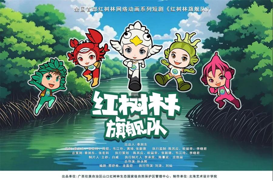 该片是全国首部以红树林生态保护为主题的网络系列动画短剧,以广西山口红树林保护区为背景,由我校影视动画学院创作团队历时一年时间完成作品制作,制作团队汇集动画、生态、科普专家。作品制作前期,团队深入山口保护区实地考察,与科研保护人员交流,确保科学性和真实性。影片动画内容经过生态专家严格把关,主要讲述了“秋茄”“白羽”“蟹将军”等五个主要角色保护红树林的故事,巧妙融入了红树林生态知识和保护意义。期待该片成为宣传山口红树林保护的亮丽名片,吸引更多人关注和参与保护行动。