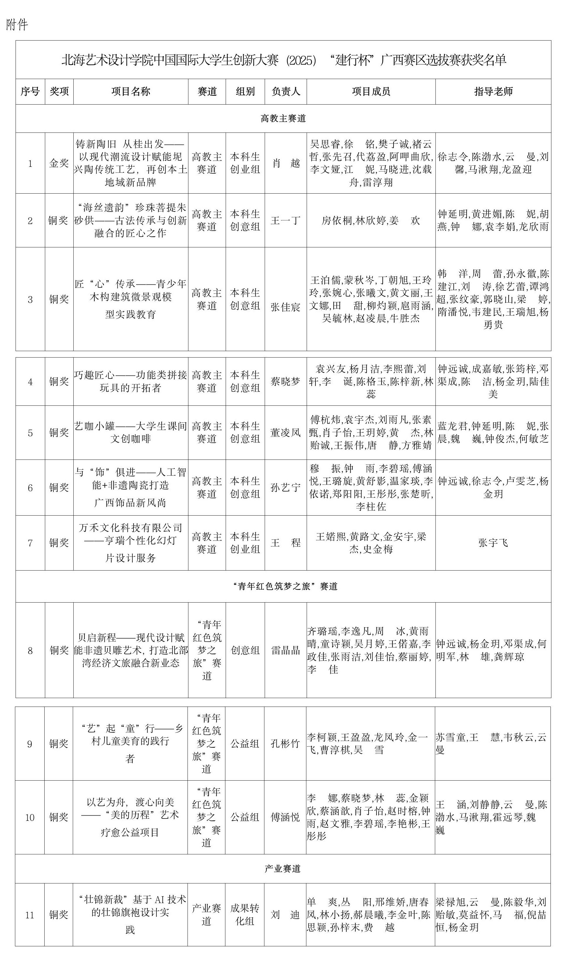 我校在中国国际大学生创新大赛(2025)“建行杯”广西赛区选拔赛获奖名单