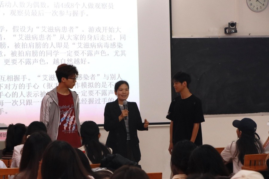 随后,王柳妮老师现场演示了安全套的正确使用方法,并组织学生进行实操练习,针对操作过程中出现的问题进行细致讲解与纠正,确保学生切实掌握这一重要的健康防护技能。